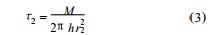 式中 , M 為各流層剪切力矩 , h 為內筒在流體中的高度 ,τ為各流層中的切應力.各流層剪切力矩 M 相等 ,但切應力τ卻不相等 ,它是半徑 r 的函數. 內筒表面上的切應力